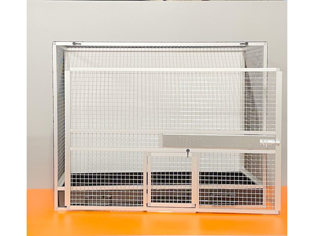 Aluminiowa konstrukcja z wykończeniem powierzchni srebrnym anodowaniem. Wypełnienia klatki są z aluminiowego sandwichu (aluminium-plastik-aluminium). To jest bardzo mocny i wysokiej jakości materiał. Może być w kolorze białym, szarym, ciemnozielonym i antracytowym. Na życzenie również w kolorze czarnym. Sufit jest pokryty siatką, na życzenie można zrobić pełny sufit. W przedniej ścianie znajduje się obrotowy stół paszowy u nas oznaczony jako KMP03. Jest to karmnik z trzema miskami o pojemności 0,35l. Częścią klatki nie jest poidło. Dodatki można zamówić https://www.aluhobby.pl/ptactwo/akcesoria-do-klatek-skrzyniowych/. Główną zaletą tej klatki skrzyniowej jest przede wszystkim niska waga 14 kg i wysoka wytrzymałość. Dzięki niskiej wadze i użytym materiałom, bardzo łatwo jest utrzymać higienę w hodowli.Wierzymy, że te klatki będą służyć pokoleniom.