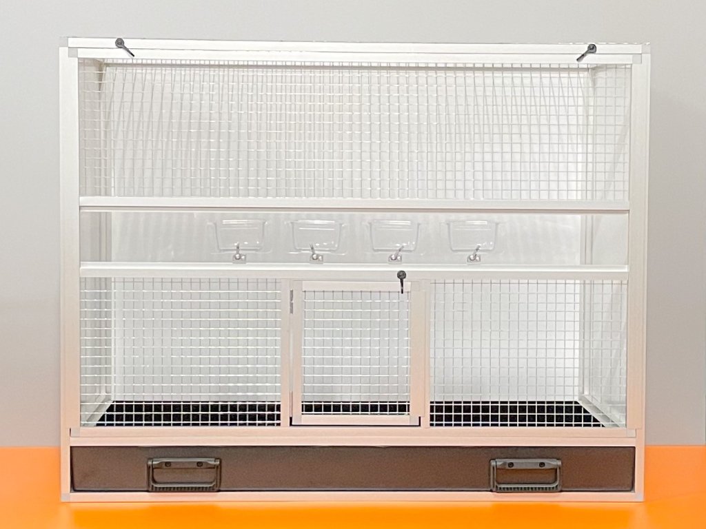 Aluminiowa konstrukcja z wykończeniem powierzchni srebrnym anodowaniem. Wypełnienia klatki są z aluminiowego sandwichu (aluminium-plastik-aluminium). To jest bardzo mocny i wysokiej jakości materiał. Może być w kolorze białym, szarym, ciemnozielonym i antracytowym. Na życzenie również w kolorze czarnym. Sufit jest pokryty siatką, na życzenie można zrobić pełny sufit. Przednia ściana składa się z wyjmowanej kratki z czterema karmnikami. Częścią klatki nie jest poidło. Dodatki można zamówić https://www.aluhobby.pl/ptactwo/akcesoria-do-klatek-skrzyniowych/. Główną zaletą tej klatki skrzyniowej jest przede wszystkim niska waga 14 kg i wysoka wytrzymałość. Dzięki niskiej wadze i użytym materiałom, bardzo łatwo jest utrzymać higienę w hodowli.Wierzymy, że te klatki będą służyć pokoleniom.