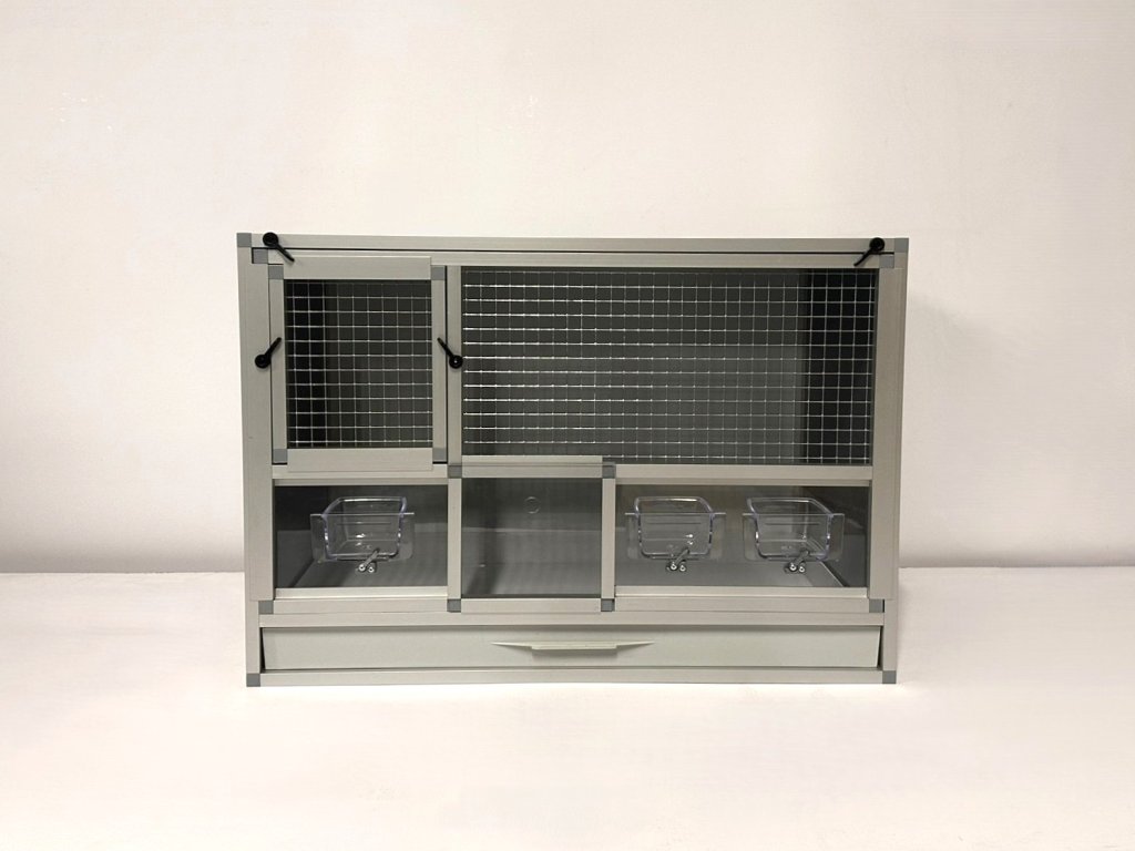 Bednové klece o rozměru: šířka 72,5 cm, hloubka 41 cm, výška 50 cm.