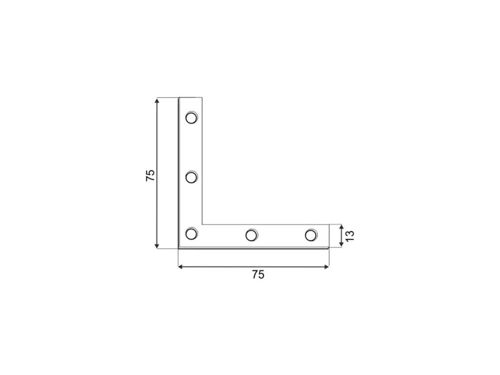 Płaski kątownik meblowy 75x75x12x2,0 mm.