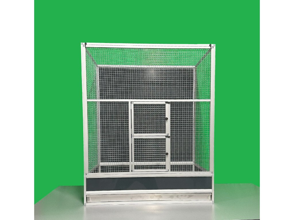 Klatka jest wykonana z anodowanych profili aluminiowych. Tylna ściana jest pełna, a jako wypełnienie użyto aluminiowego sandwichu. Siatka to wysokiej jakości włoska siatka marki Esafort, oczko 16x16, drut 1,2 mm.