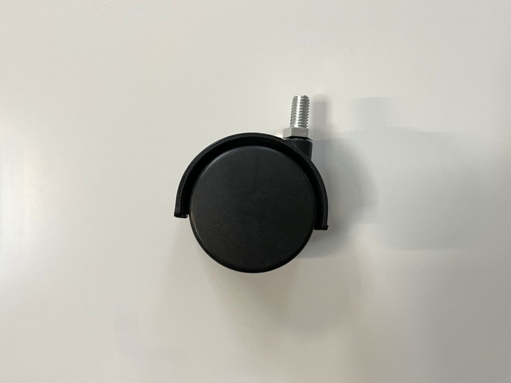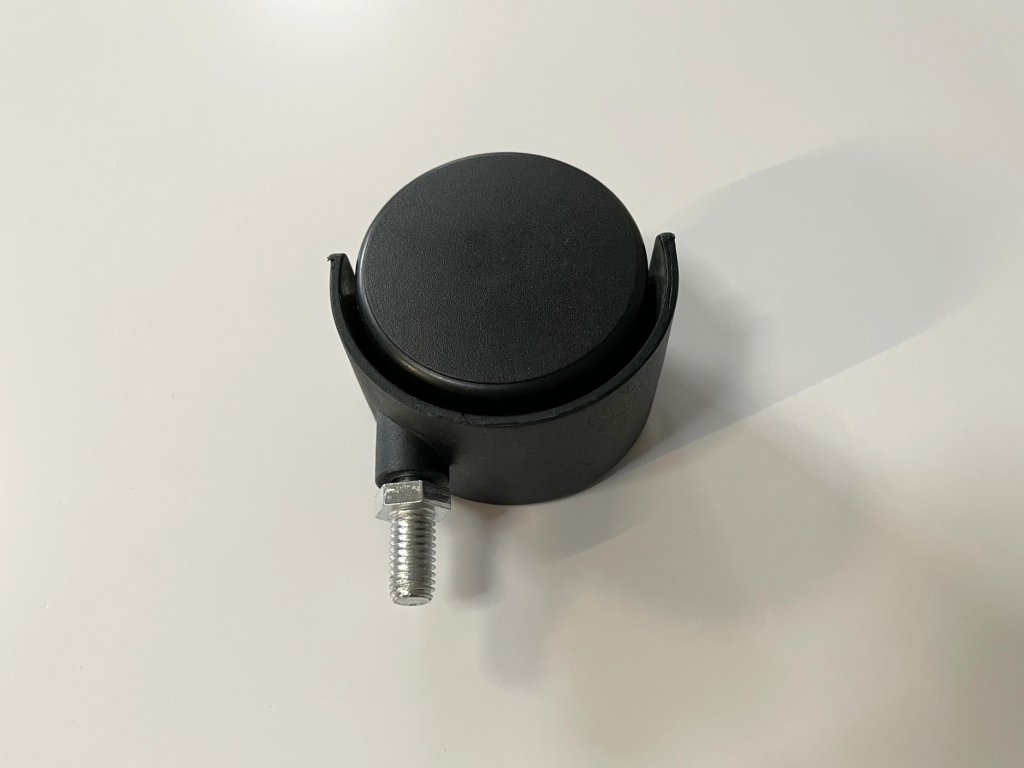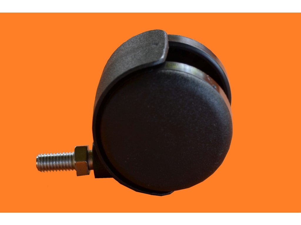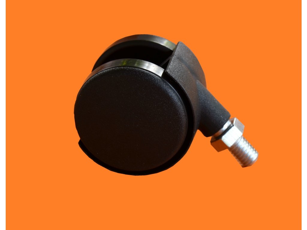 Kółko meblowe z śrubą M8 i średnicą 50 mm jest wykonane z twardego, wytrzymałego plastiku o maksymalnym obciążeniu 30 kg.