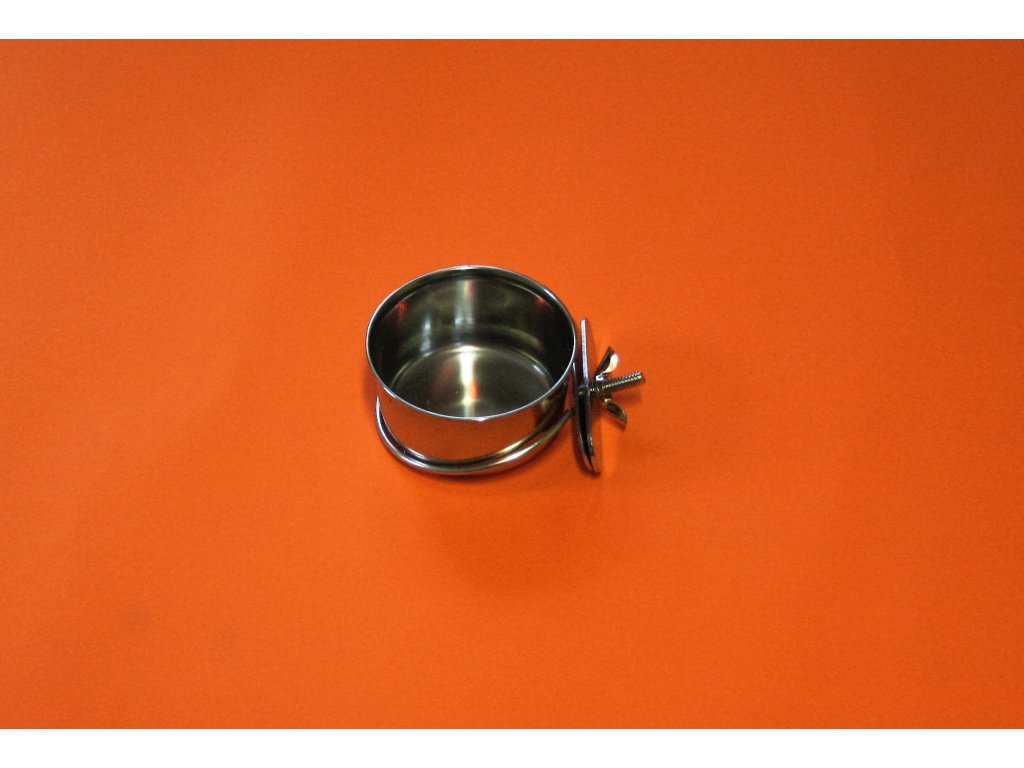 Stalowa miska do przykręcenia do klatek dla ptaków.