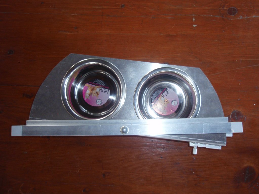 Poidło umożliwia prostą, szybką manipulację z paszami, utrzymanie czystości i higieny w hodowli. Tego stołu paszowego używamy przy produkcji klatek skrzyniowych oznaczonych jako BKP. Produkt zawiera ramę stołu do karmienia z profili aluminiowych, aluminiowe zawiasy, aluminiowe płyty bazowe oraz dwie miski ze stali nierdzewnej o pojemności 180 ml.