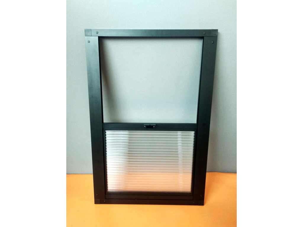 Wymiary otworu wlotowego wynoszą 36 x 27 cm. Okno wycieczkowe jest wykonane z profili aluminiowych. Prowadnica okna jest podłożona plastikowym materiałem dla lepszego przesuwu. Siła poliwęglanu wynosi 10 mm.