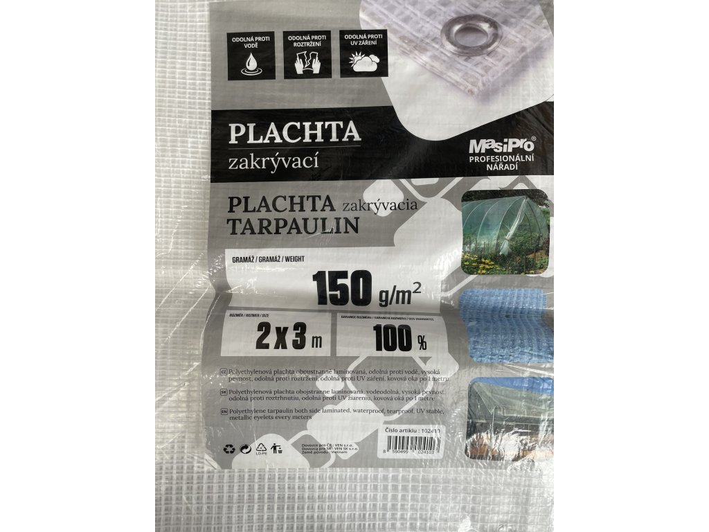 Gramatura plandeki wynosi 150 g.Odporna na wodę, rozdarcia i promieniowanie UV.