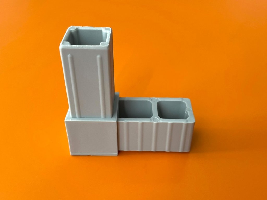 Dużą zaletą jest to, że nie ma potrzeby trudnego spawania profili aluminiowych. Połączenie profili aluminiowych charakteryzuje się wysoką wytrzymałością i zwartym wyglądem.Plastikowe złączki oferujemy w dwóch kolorach, szarym i czarnym.