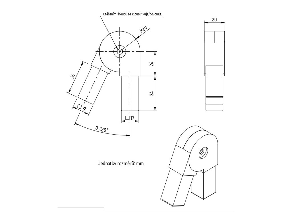 Ten typ złącza jest przeznaczony do profili 20x20x1,5mm.