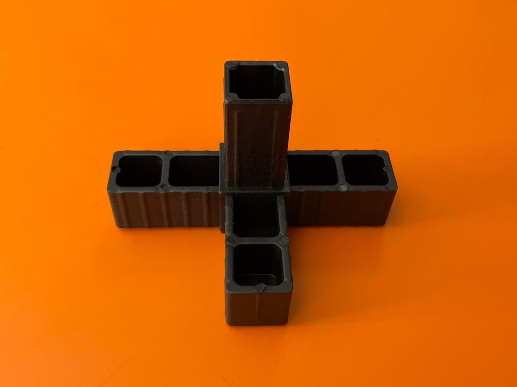 Dużą zaletą jest to, że nie ma potrzeby trudnego spawania profili aluminiowych. Połączenie profili aluminiowych charakteryzuje się wysoką wytrzymałością i zwartym wyglądem.Oferujemy plastikowe złączki w dwóch kolorach, szarym i czarnym.