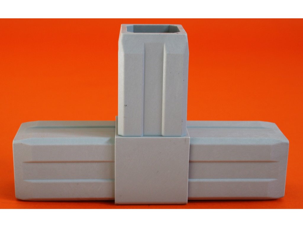 Te złączki są całkowicie plastikowe, solidne i naprawdę masywne. Czasami trzeba mocno uderzyć łączniki do profilu. Zarówno profil, jak i złącze mogą mieć pewne tolerancje, które prowadzą do połączenia z nadmiarem. Tym bardziej połączenie jest silniejsze. Dla łatwiejszego załadowania do profilu można zeszlifować sprzęgło.Ten typ złącza jest przeznaczony do profili 40x40x2mm.