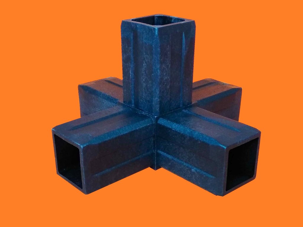 Dużą zaletą jest to, że nie ma potrzeby trudnego spawania profili aluminiowych. Połączenie profili aluminiowych charakteryzuje się wysoką wytrzymałością i zwartym wyglądem.Ten typ złącza jest przeznaczony do profili 40x40x2mm.