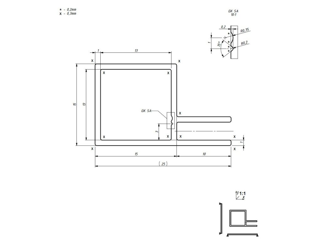 Ten typ profilu jest odpowiedni do mocowania materiałów o grubości 3mm.