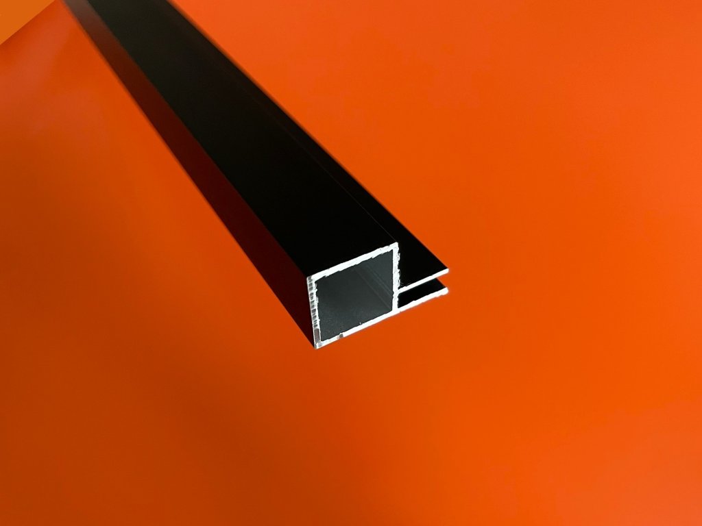 Profil aluminiowy z dwoma skrzydełkami HJ15V1 czarny anodowany. Ten profil dzięki 3mm przerwie między skrzydełkami oferuje wiele możliwości wykorzystania. Do tej szczeliny można wkładać aluminiowe płyty warstwowe, 3mm pleksi, spienione PVC, twarde PVC, a nawet spawane siatki.