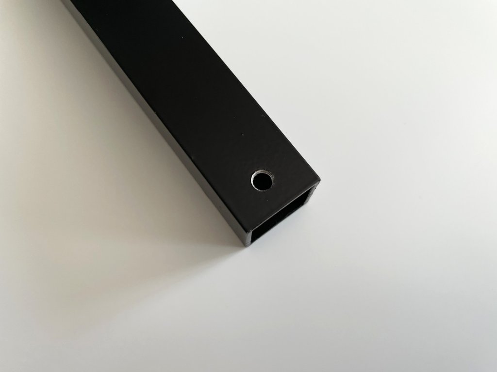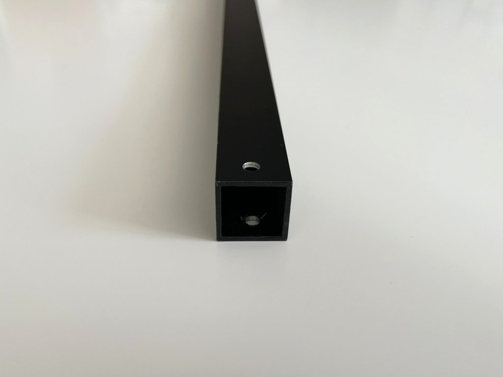 Jest to profil z powłoką malowaną proszkowo. Ten profil oferujemy w kolorze matowej czerni. Idealne łączniki do łączenia tego profilu są również w czarnym kolorze, znajdziesz je w naszej ofercie "plastowe łączniki". Tego profilu nie przycinamy na wymiar, oferujemy go tylko w długości 2m. Na końcach profili ok. 5 mm od krawędzi wywiercono otwory do zawieszenia w kabinie lakierniczej.