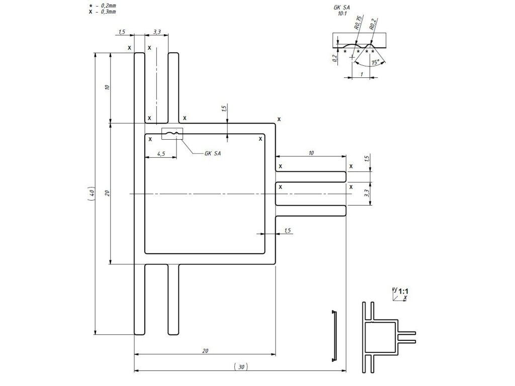 Odstęp między skrzydełkami wynosi 3 mm.