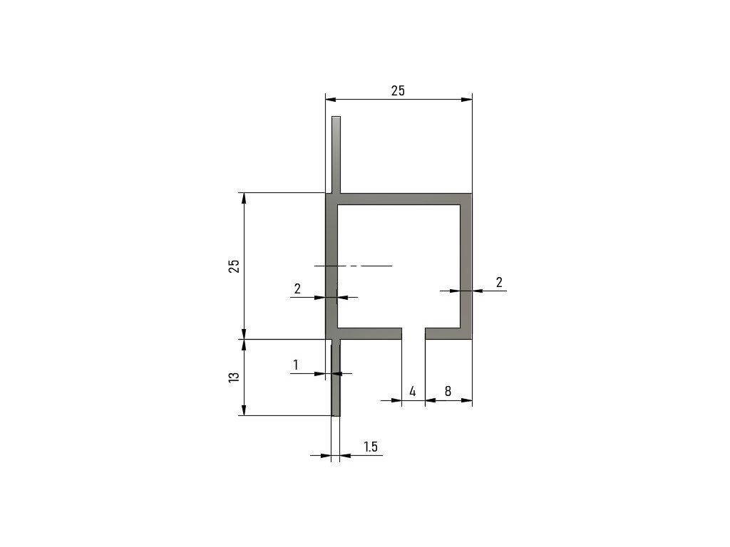 Profil aluminiowy HJ25K2 z rowkiem - 2 000 mm