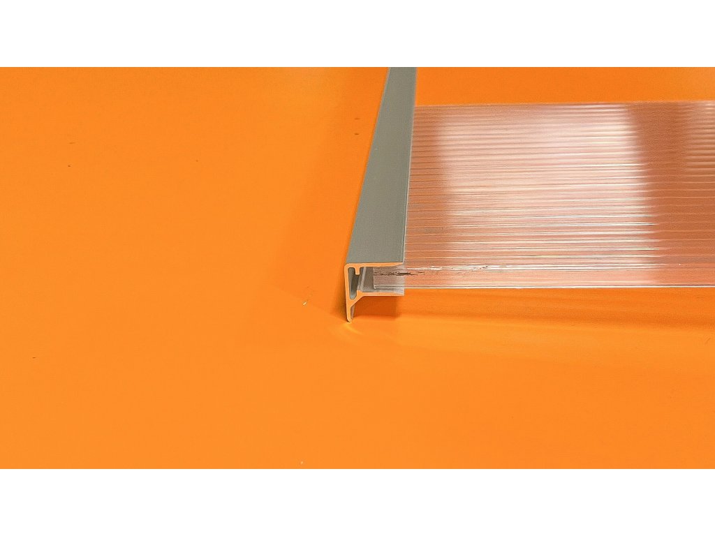 Profil aluminiowy w kształcie F służy do krawędziowego zakończenia płyt poliwęglanowych.