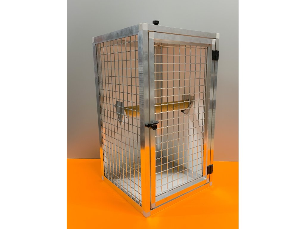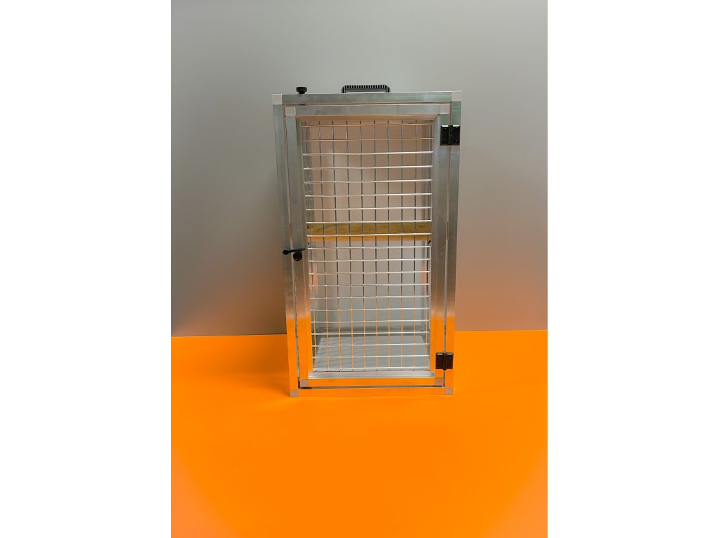 Kształt tej przenośki powstał zgodnie z wymaganiami naszych klientów. Transporter jest odpowiedni tylko dla oswojonej papugi, ponieważ rozmiar drzwi jest do tego przeznaczony. Użyty materiał to naturalny aluminium, aluminiowa płyta warstwowa i sito z poziomymi oczkami. Transporter bardzo dobrze mocuje się na siedzeniu pojazdu za pomocą pasów bezpieczeństwa. Na życzenie możemy również wyprodukować transporter o innych wymiarach.Parametry dodatkowe