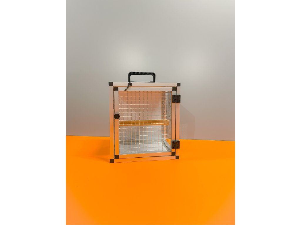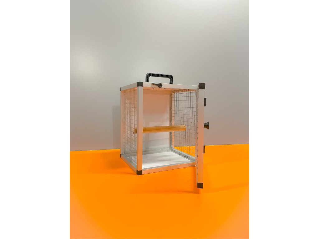 Użyte materiały są bardzo wysokiej jakości i zmywalne. Jest wykonana z profilu 15x15x1 mm z wykończeniem powierzchni anodowanej. Wymiary klatki transportowej to szerokość 28 cm, głębokość 24 cm, wysokość 32 cm. Wypełnienia skrzynki transportowej są wykonane z aluminiowego sandwichu. Użyta siatka to włoski Esafort oczko 16x16 drut 1,2mm.Całkowita waga skrzynki wynosi tylko 2 kg.Parametry dodatkowe
