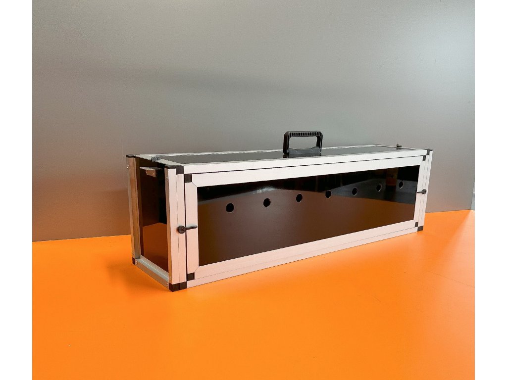 Użyte materiały są bardzo wysokiej jakości i zmywalne. Użyta siatka oko 19x19 grubość drutu 2mm Przednia ściana, zakładka można łatwo wyjąć. Tubus jest wykonany z profilu 15x15x1 mm z powłoką anodowaną. Wymiary tubusu transportowego to szerokość 83 cm, głębokość 20 cm, wysokość 24 cm. Wypełnienia skrzynki transportowej są wykonane z aluminiowego sandwichu. Kolor może być srebrny, zielony, biały, antracytowy.Całkowita waga skrzynki wynosi tylko 4,5 kg. Na życzenie skrzynka może być dłuższa lub mieć inne wymiary.Parametry dodatkowe