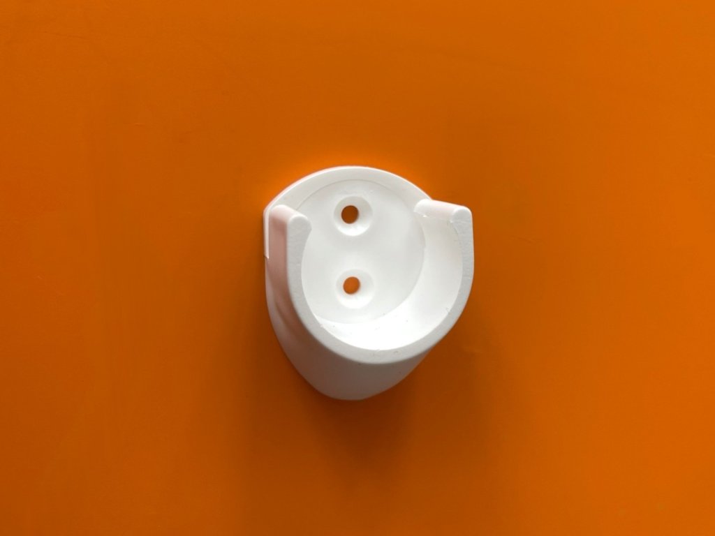 Plastowy uchwyt na pręty o średnicy 22 mm i 25 mm, biały.