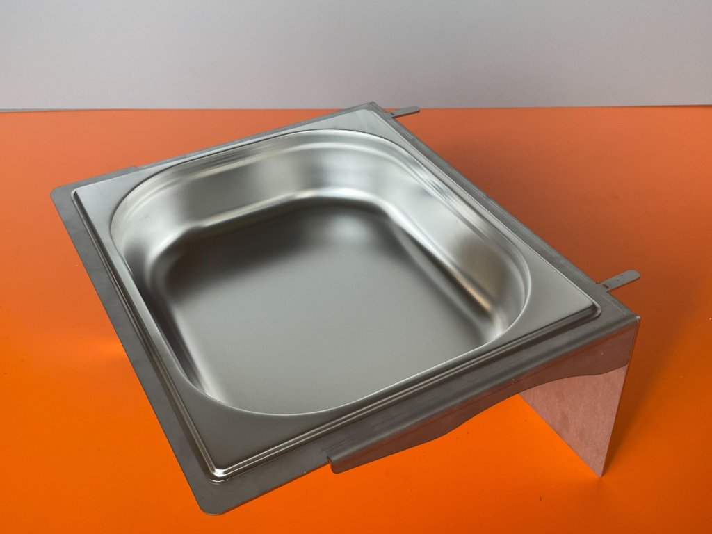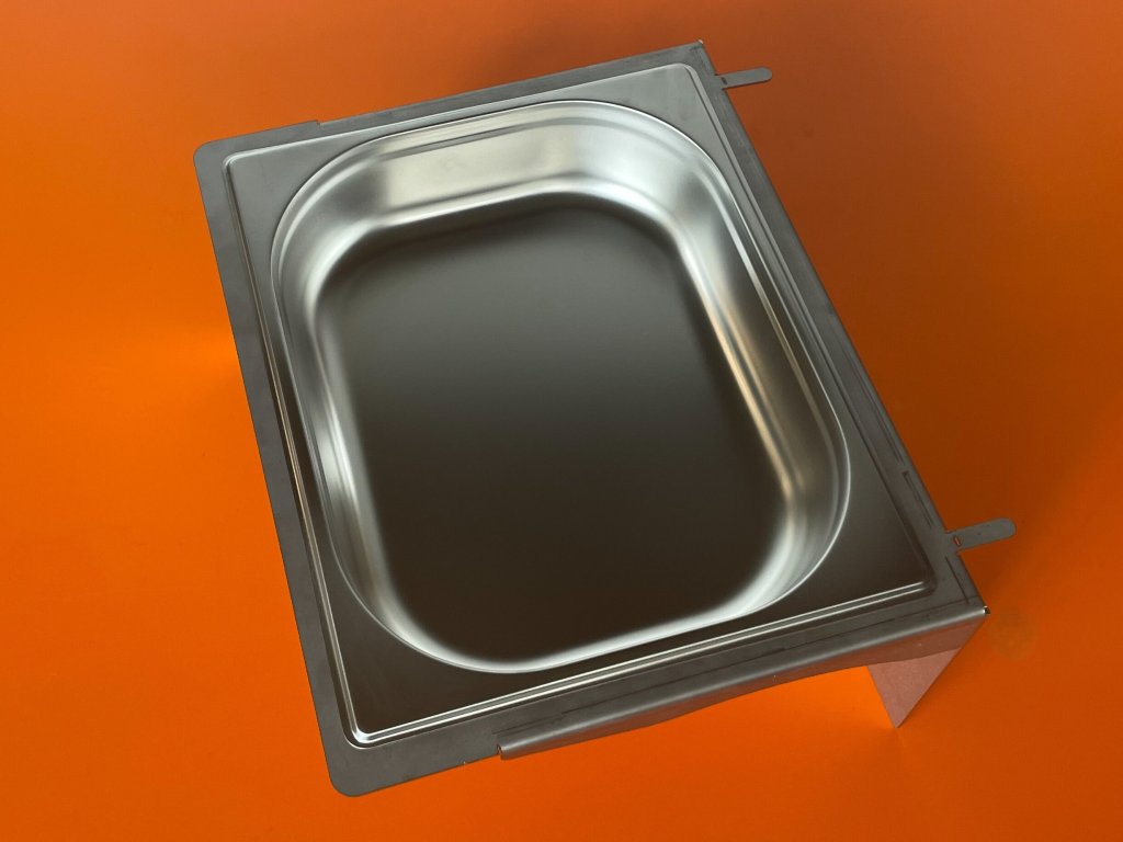 Rama/belka wykonana jest z blachy ze stali nierdzewnej. Ściana, która opiera się na siatce ma wymiary 355 x 170 mm. Jest to wystarczająco duża powierzchnia, aby zapobiec zwisaniu siatki podczas zawieszania. Wanienkę kąpielową można po prostu zawiesić na siatce, można ją również zdjąć w ten sam sposób. Bardzo dobrym pomysłem jest określenie rozmiaru oczek w siatce i, w razie potrzeby, grubości drutów w uwagach do zamówienia.