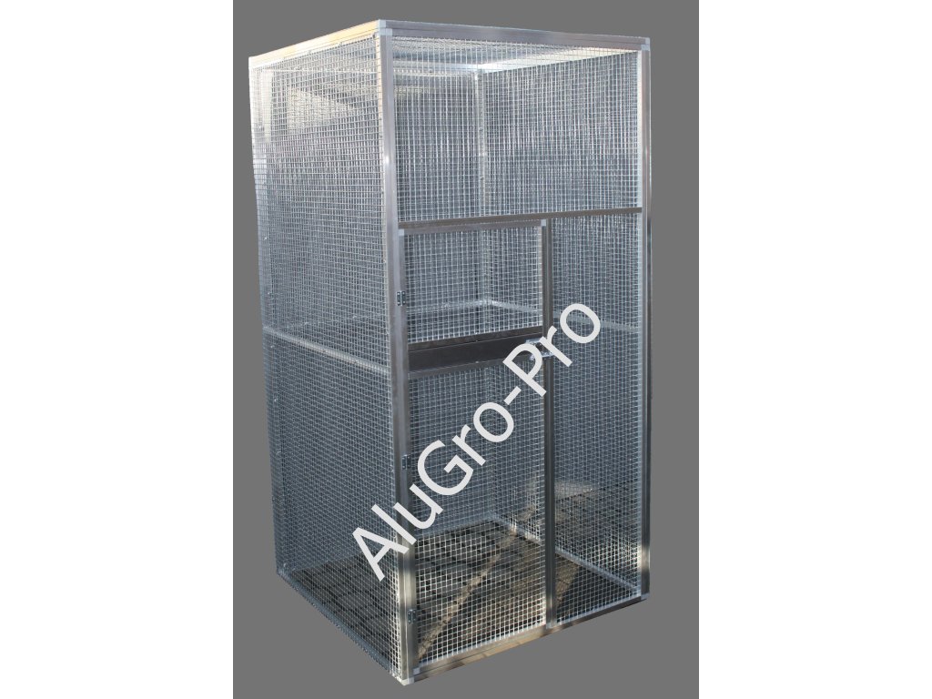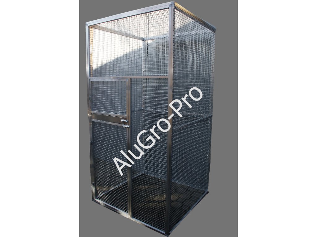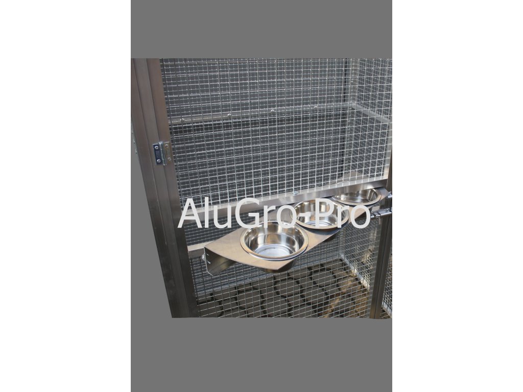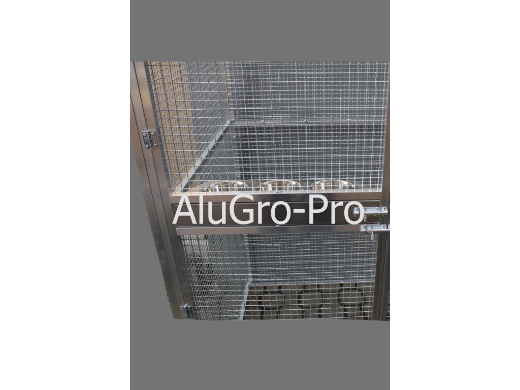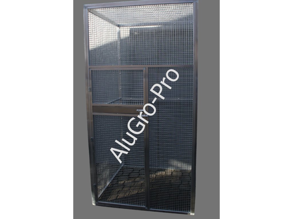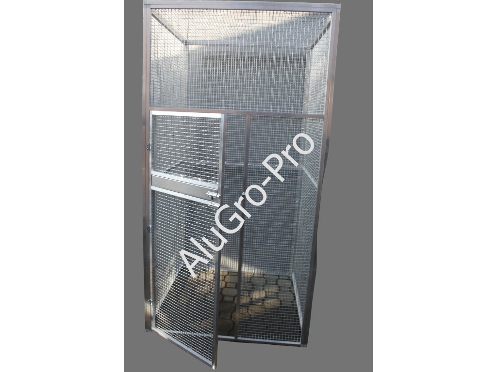 Drzwiczki do woliery mają wysokość 140 cm, szerokość 55 cm. Do tych drzwiczek włożony jest aluminiowy obrotowy stół do karmienia z trzema miskami ze stali nierdzewnej typ KPM03. Woliera jest pokryta siatką Esafort 19x19x1,45mm. Na życzenie klienta można siatkę wymienić na inną z naszej oferty. Siatka w całej wolierze jest rozciągnięta od wewnątrz wolierze i to z powodów estetycznych. Cała woliera jest skręcona śrubami nr 6. Do ramy są nitowane aluminiowe gwinty. Wolierę wysyłamy transportem paletowym Toptrans lub PPL. Woliera jest bardzo szybka i łatwa do złożenia i ponownego rozłożenia. Po uzgodnieniu można zamiast siatki w niektórych ramach umieścić wypełnienie z kompozytu aluminiowego, twardego PVC lub pleksi.