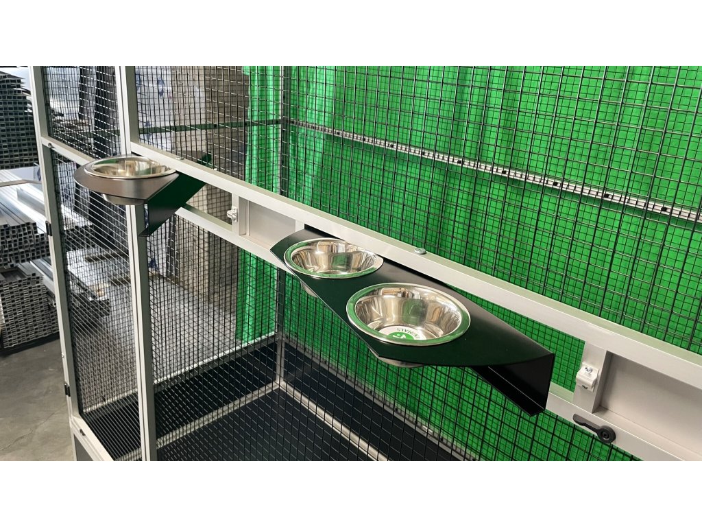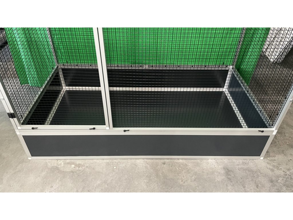 Woliera jest czyszczona poprzez bezpośrednie wejście do niej. Jeśli klient sobie tego życzy, możemy dowolną ścianę wykonać jako pełną, w kolorze: białym, srebrnym, antracytowym, zielonym i żółtym.