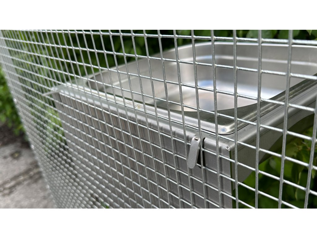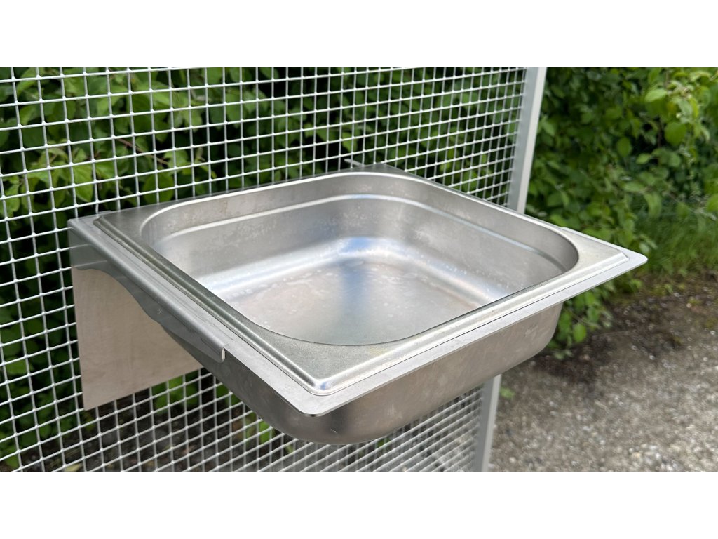 Rama/belka wykonana jest z blachy ze stali nierdzewnej. Ściana opierająca się na siatce ma wymiary 380 x 200 mm. Jest to wystarczająco duża powierzchnia, aby zapobiec zwisaniu siatki podczas zawieszania. Wanienkę kąpielową można po prostu zawiesić na siatce, można ją również zdjąć w ten sam sposób. Bardzo dobrym pomysłem jest określenie rozmiaru oczek w siatce i, w razie potrzeby, grubości drutów w uwagach do zamówienia.