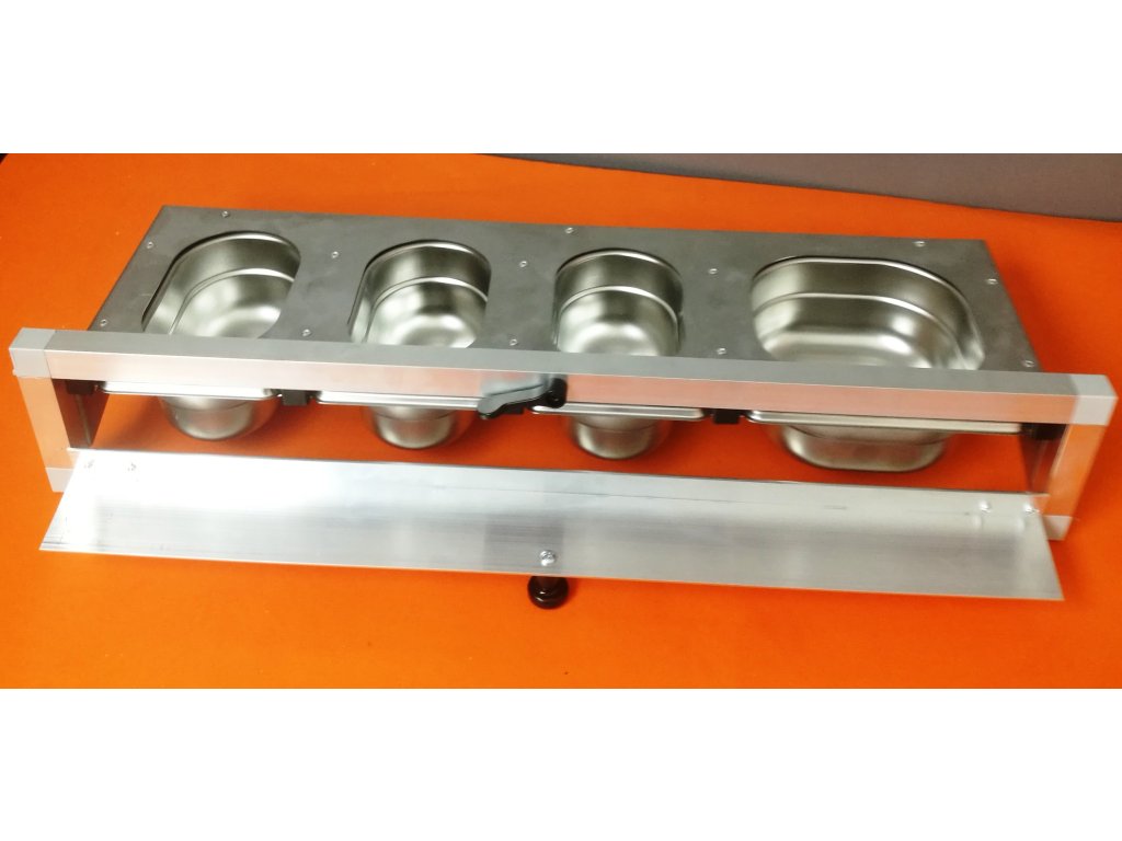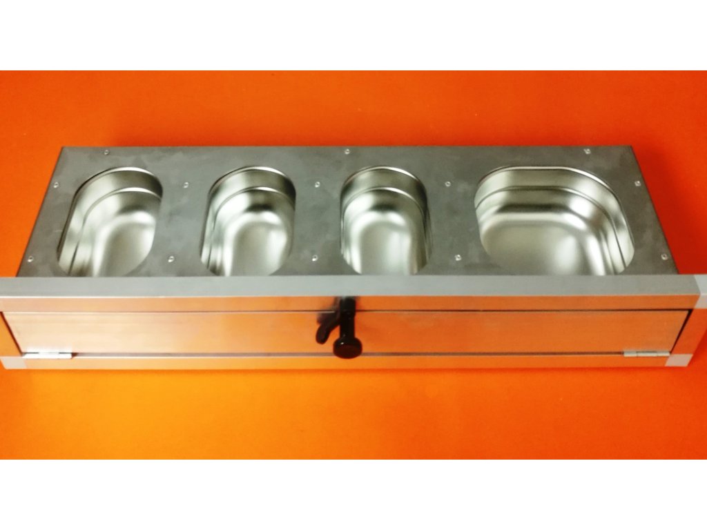Wysuwane stoły do karmienia z pojemnikami gastronomicznymi to tylko potwierdzają. Gastro pojemniki nie są odpowiednie dla drobnych ptaków ze względu na swoją głębokość 60 mm. Siła blachy nierdzewnej użytej na płytę główną wynosi 1 mm. Możliwość łączenia z innymi pulpitami wtykowymi, a także z pulpitami obrotowymi, oferuje hodowcy dużą możliwość spełnienia swoich wyobrażeń, jak najlepiej zapewnić obsługę swojego urządzenia hodowlanego. Wysuwane i obrotowe stoły do karmienia (z wyjątkiem stołu do karmienia dla ar) mają wysokość łącznie z ramką 11 cm. Karmnik jest dostarczany w stanie złożonym, w tym z ramką. Rama jest wykonana z aluminiowego profilu 20x20x1,5mm. Jeśli klient zdecyduje się na wbudowanie stołu do karmienia bezpośrednio w konstrukcję woliery, najlepiej jest zamówić stół do karmienia i ramkę osobno. W ramce można łatwo wymienić łączniki i wbudować ladę bezpośrednio w konstrukcję.