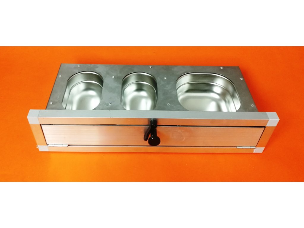 Wysuwane stoły do karmienia z pojemnikami gastronomicznymi to tylko potwierdzają. Gastro pojemniki nie są odpowiednie dla drobnych ptaków ze względu na swoją głębokość 60 mm. Siła blachy nierdzewnej użytej na płytę główną wynosi 1 mm. Możliwość łączenia z innymi pulpitami wtykowymi, a także z pulpitami obrotowymi, oferuje hodowcy dużą możliwość spełnienia swoich wyobrażeń, jak najlepiej zapewnić obsługę swojego urządzenia hodowlanego. Wysuwane i obrotowe stoły do karmienia (z wyjątkiem stołu do karmienia dla ar) mają wysokość łącznie z ramką 11 cm. Karmnik jest dostarczany w stanie złożonym, w tym z ramką. Rama jest wykonana z aluminiowego profilu 20x20x1,5mm. Jeśli klient zdecyduje się na wbudowanie stołu do karmienia bezpośrednio w konstrukcję woliery, najlepiej jest zamówić stół do karmienia i ramkę osobno. W ramce można łatwo wymienić łączniki i wbudować ladę bezpośrednio w konstrukcję.
