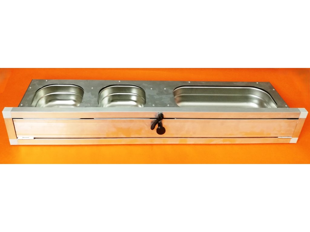 Wysuwane stoły do karmienia z pojemnikami gastronomicznymi to tylko potwierdzają. Gastro pojemniki nie są odpowiednie dla drobnych ptaków ze względu na swoją głębokość 60 mm. Siła blachy nierdzewnej użytej na płytę główną wynosi 1 mm. Możliwość łączenia z innymi pulpitami wtykowymi, a także z pulpitami obrotowymi, oferuje hodowcy dużą możliwość spełnienia swoich wyobrażeń, jak najlepiej zapewnić obsługę swojego urządzenia hodowlanego. Wysuwane i obrotowe stoły do karmienia (z wyjątkiem stołu do karmienia dla ar) mają wysokość łącznie z ramką 11 cm. Karmnik jest dostarczany w stanie złożonym, w tym z ramką. Rama jest wykonana z aluminiowego profilu 20x20x1,5mm. Jeśli klient zdecyduje się na wbudowanie stołu do karmienia bezpośrednio w konstrukcję woliery, najlepiej jest zamówić stół do karmienia i ramkę osobno. W ramce można łatwo wymienić łączniki i wbudować ladę bezpośrednio w konstrukcję.