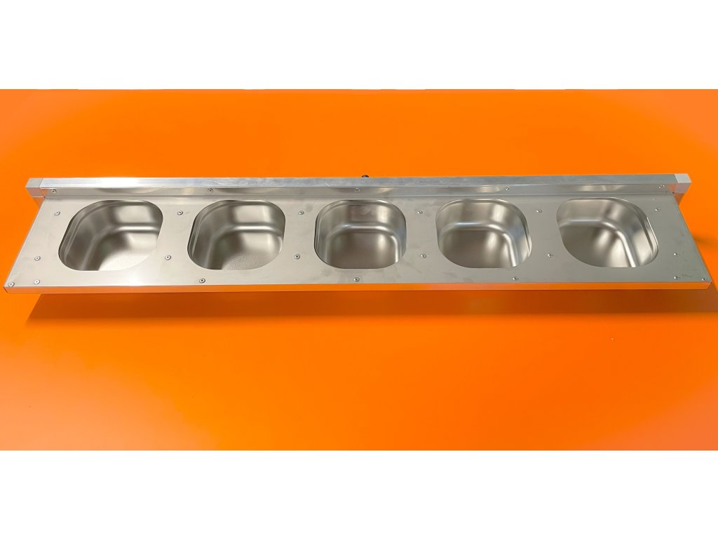 Stół do karmienia zawiera pięć misek o pojemności jednej miski 1,3l.
