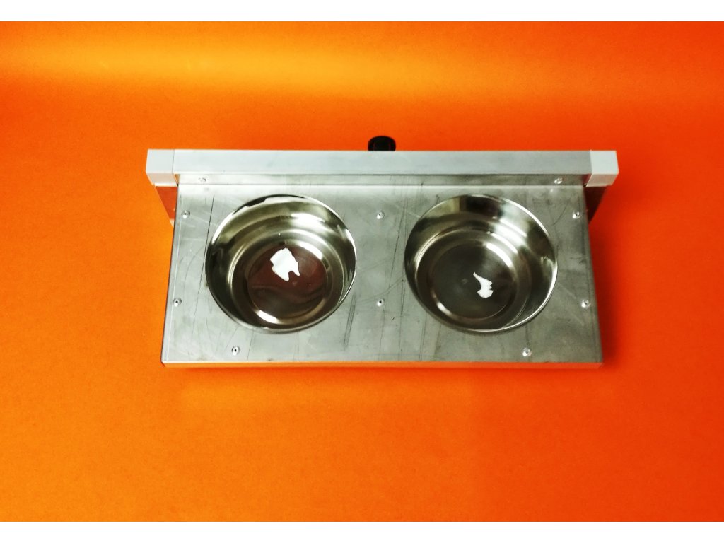 Stół do karmienia zawiera jedną miskę o pojemności 350ml na wodę, drugą miskę o pojemności 350ml na owoce, warzywa.