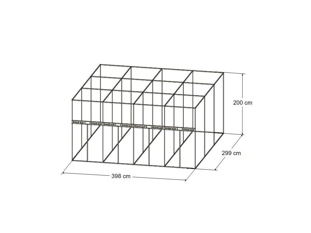 Elementami każdej konstrukcji woliery są profile aluminiowe, łączniki, półki na karmę z miseczkami, drzwiczki, zawiasy.