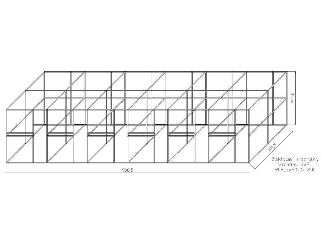 Szerokość jednego boksu wynosi około 153 cm. Konstrukcja po złożeniu tworzy jedną całość. Na życzenie możemy dostarczyć za dopłatą konstrukcję również w srebrnym anodowanym wykonaniu, gdzie cena konstrukcji wzrośnie o ok. 13%. Części zestawu to drzwiczki do woliery, zawiasy i zasuwka. Wymiary samych drzwiczek to: wysokość 134 cm, szerokość 48 cm. Częścią zestawu jest również stalowy stół do karmienia, gdzie klient ma do wyboru trzy typy KPG05, KPG07, KPG11. Zawsze są to wsuwane stalowe stoły paszowe z pojemnikami gastronomicznymi. Gastro pojemniki mają wysokość 6 cm. Pojedynczy stół paszowy KPG 11 oferuje również możliwość wymiany misek na płytsze. Miejsce 6 cm na 4 cm. Wybrany typ należy podać w uwagach. Te stoły paszowe w porównaniu do obrotowych stołów paszowych mają kilka zalet. Naczynia z karmnika nie można wyciągnąć zwierzęciem wewnątrz woliery. Przed karmnikiem można umieścić żerdź. Czego nie umożliwia obrotowy stół paszowy. Naczynia ze względu na swój eliptyczny kształt i głębokość mają większą pojemność niż okrągłe miski. Siatka i materiały mocujące nie są częścią zestawu.Odpowiednie użycie siatki to marka Esafort o długości 82m.