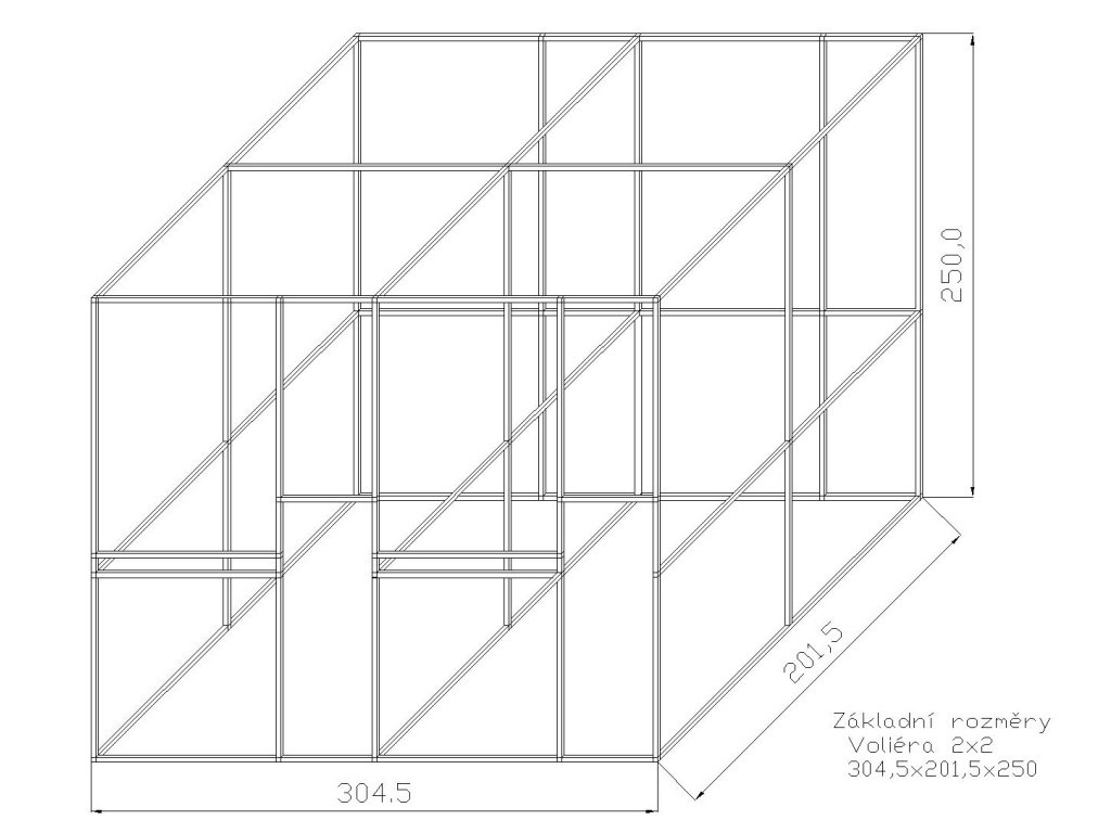 Szerokość jednego boksu wynosi około 153 cm. Konstrukcja po złożeniu tworzy jedną całość. Na życzenie możemy dostarczyć za dopłatą konstrukcję również w srebrnym anodowanym wykonaniu, gdzie cena konstrukcji wzrośnie o ok. 13%. Części zestawu to drzwiczki do woliery, zawiasy i zasuwka. Wymiary samych drzwiczek to: wysokość 134 cm, szerokość 48 cm. Częścią zestawu jest również stalowy stół do karmienia, gdzie klient ma do wyboru trzy typy KPG05, KPG07, KPG11. Zawsze są to wsuwane stalowe stoły paszowe z pojemnikami gastronomicznymi. Gastro pojemniki mają wysokość 6 cm. Pojedynczy stół paszowy KPG 11 oferuje również możliwość wymiany misek na płytsze. Miejsce 6 cm na 4 cm. Wybrany typ należy podać w uwagach. Te stoły paszowe w porównaniu do obrotowych stołów paszowych mają kilka zalet. Naczynia z karmnika nie można wyciągnąć zwierzęciem wewnątrz woliery. Przed karmnikiem można umieścić żerdź. Czego nie umożliwia obrotowy stół paszowy. Naczynia ze względu na swój eliptyczny kształt i głębokość mają większą pojemność niż okrągłe miski. Siatka i materiały mocujące nie są częścią zestawu.Odpowiednie użycie siatki to marka Esafort o długości 36m.