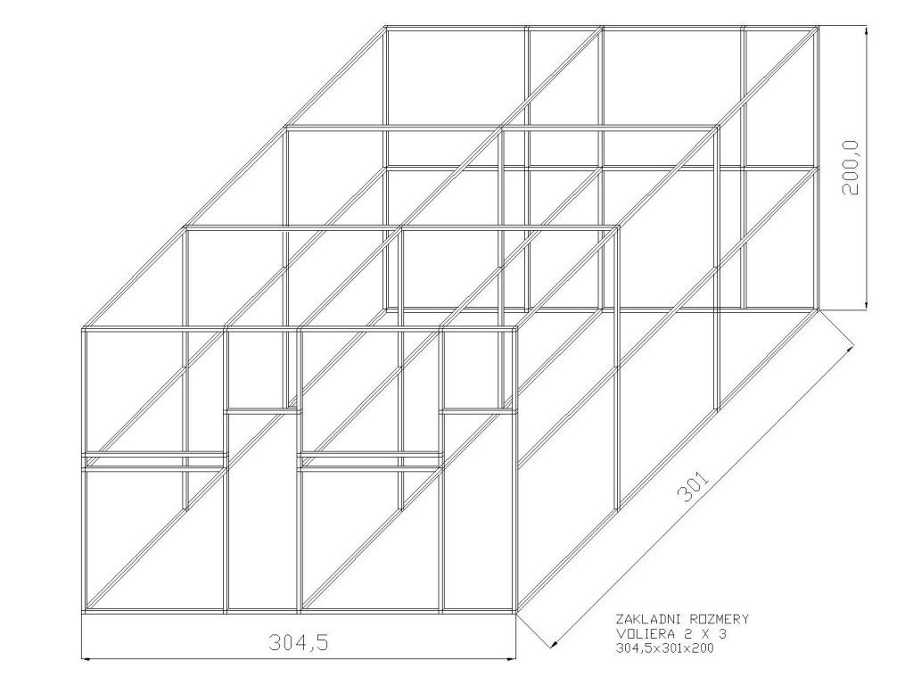 Szerokość jednego boksu wynosi około 153 cm. Konstrukcja po złożeniu tworzy jedną całość. Na życzenie możemy dostarczyć za dopłatą konstrukcję również w srebrnym anodowanym wykonaniu, gdzie cena konstrukcji wzrośnie o ok. 13%. Części zestawu to drzwiczki do woliery, zawiasy i zasuwka. Wymiary samych drzwiczek to: wysokość 134 cm, szerokość 48 cm. Częścią zestawu jest również stalowy stół do karmienia, gdzie klient ma do wyboru trzy typy KPG05, KPG07, KPG11. Zawsze są to wsuwane stalowe stoły paszowe z pojemnikami gastronomicznymi. Gastro pojemniki mają wysokość 6 cm. Pojedynczy stół paszowy KPG 11 oferuje również możliwość wymiany misek na płytsze. Miejsce 6 cm na 4 cm. Wybrany typ należy podać w uwagach. Te stoły paszowe w porównaniu do obrotowych stołów paszowych mają kilka zalet. Naczynia z karmnika nie można wyciągnąć zwierzęciem wewnątrz woliery. Przed karmnikiem można umieścić żerdź. Czego nie umożliwia obrotowy stół paszowy. Naczynia ze względu na swój eliptyczny kształt i głębokość mają większą pojemność niż okrągłe miski. Siatka i materiały mocujące nie są częścią zestawu.Odpowiednie użycie siatki to marka Esafort o długości 39m.