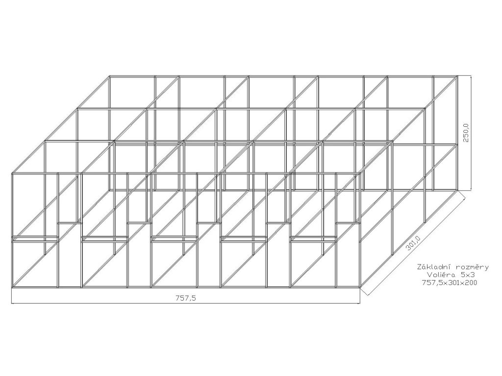 Szerokość jednego boksu wynosi około 153 cm. Konstrukcja po złożeniu tworzy jedną całość. Na życzenie możemy dostarczyć za dopłatą konstrukcję również w srebrnym anodowanym wykonaniu, gdzie cena konstrukcji wzrośnie o ok. 13%. Części zestawu to drzwiczki do woliery, zawiasy i zasuwka. Wymiary samych drzwiczek to: wysokość 134 cm, szerokość 48 cm. Częścią zestawu jest również stalowy stół do karmienia, gdzie klient ma do wyboru trzy typy KPG05, KPG07, KPG11. Zawsze są to wsuwane stalowe stoły paszowe z pojemnikami gastronomicznymi. Gastro pojemniki mają wysokość 6 cm. Pojedynczy stół paszowy KPG 11 oferuje również możliwość wymiany misek na płytsze. Miejsce 6 cm na 4 cm. Wybrany typ należy podać w uwagach. Te stoły paszowe w porównaniu do obrotowych stołów paszowych mają kilka zalet. Naczynia z karmnika nie można wyciągnąć zwierzęciem wewnątrz woliery. Przed karmnikiem można umieścić żerdź. Czego nie umożliwia obrotowy stół paszowy. Naczynia ze względu na swój eliptyczny kształt i głębokość mają większą pojemność niż okrągłe miski. Siatka i materiały mocujące nie są częścią zestawu.Odpowiednie użycie siatki to marka Esafort o długości 105m.
