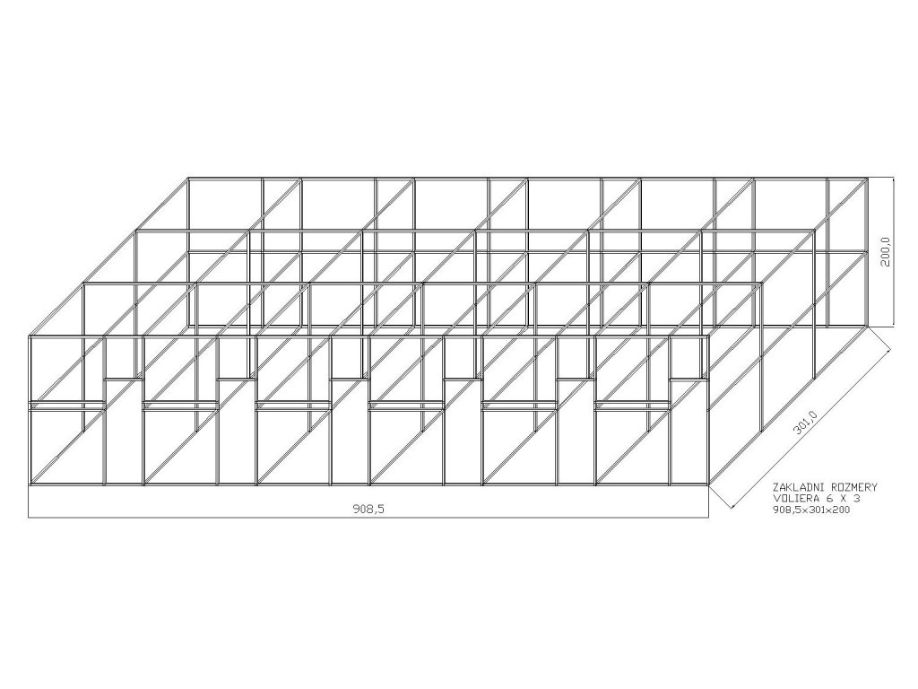 Szerokość jednego boksu wynosi około 153 cm. Konstrukcja po złożeniu tworzy jedną całość. Na życzenie możemy dostarczyć za dopłatą konstrukcję również w srebrnym anodowanym wykonaniu, gdzie cena konstrukcji wzrośnie o ok. 13%. Części zestawu to drzwiczki do woliery, zawiasy i zasuwka. Wymiary samych drzwiczek to: wysokość 134 cm, szerokość 48 cm. Częścią zestawu jest również stalowy stół do karmienia, gdzie klient ma do wyboru trzy typy KPG05, KPG07, KPG11. Zawsze są to wsuwane stalowe stoły paszowe z pojemnikami gastronomicznymi. Gastro pojemniki mają wysokość 6 cm. Pojedynczy stół paszowy KPG 11 oferuje również możliwość wymiany misek na płytsze. Miejsce 6 cm na 4 cm. Wybrany typ należy podać w uwagach. Te stoły paszowe w porównaniu do obrotowych stołów paszowych mają kilka zalet. Naczynia z karmnika nie można wyciągnąć zwierzęciem wewnątrz woliery. Przed karmnikiem można umieścić żerdź. Czego nie umożliwia obrotowy stół paszowy. Naczynia ze względu na swój eliptyczny kształt i głębokość mają większą pojemność niż okrągłe miski. Siatka i materiały mocujące nie są częścią zestawu.Odpowiednie użycie siatki to marka Esafort o długości 105m.