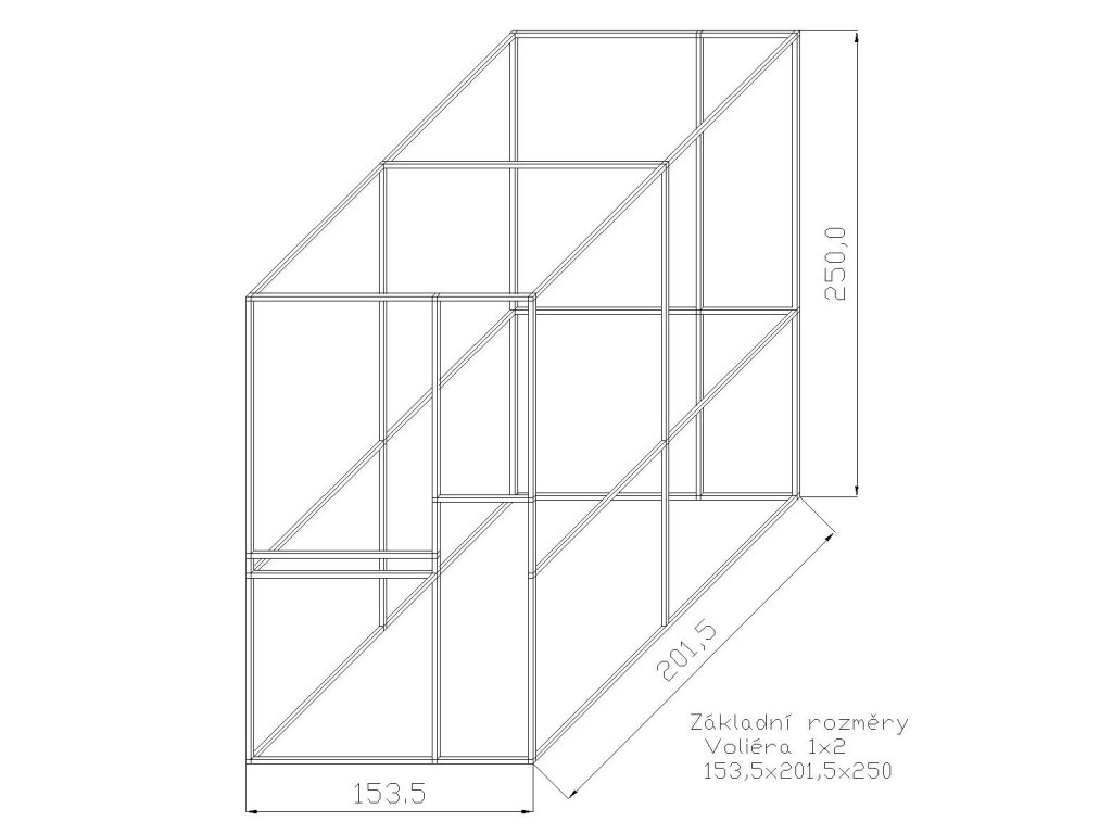 Szerokość jednego boksu wynosi około 153 cm. Konstrukcja po złożeniu tworzy jedną całość. Na życzenie możemy dostarczyć za dopłatą konstrukcję również w srebrnym anodowanym wykonaniu, gdzie cena konstrukcji wzrośnie o ok. 13%. Części zestawu to drzwiczki do woliery, zawiasy i zasuwka. Wymiary samych drzwiczek to: wysokość 134 cm, szerokość 48 cm. Częścią zestawu jest również stalowy stół do karmienia, gdzie klient ma do wyboru trzy typy KPG05, KPG07, KPG11. Zawsze są to wsuwane stalowe stoły paszowe z pojemnikami gastronomicznymi. Gastro pojemniki mają wysokość 6 cm. Pojedynczy stół paszowy KPG 11 oferuje również możliwość wymiany misek na płytsze. Miejsce 6 cm na 4 cm. Wybrany typ należy podać w uwagach. Te stoły paszowe w porównaniu do obrotowych stołów paszowych mają kilka zalet. Naczynia z karmnika nie można wyciągnąć zwierzęciem wewnątrz woliery. Przed karmnikiem można umieścić żerdź. Czego nie umożliwia obrotowy stół paszowy. Naczynia ze względu na swój eliptyczny kształt i głębokość mają większą pojemność niż okrągłe miski. Siatka i materiały mocujące nie są częścią zestawu.Odpowiednie użycie siatki to marka Esafort o długości 21m.